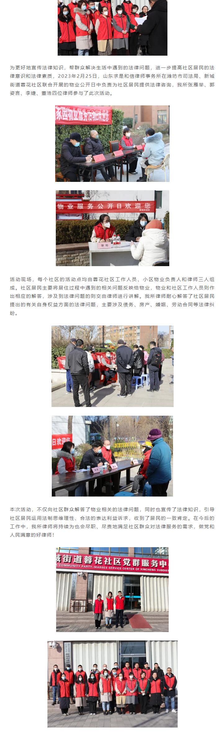 求是和信律师为新城街道蓉花路社区物业公开日活动提供法律服务 来源:求是和信网 日期:2023-02-27 14:17 发布人:qshx 浏览量: 2289 上一篇:曾庆春律师受邀为潍坊市交通局作“规范行政执法 预防法律风险”专题讲座 下一篇:求是和信涉外法律服务之路