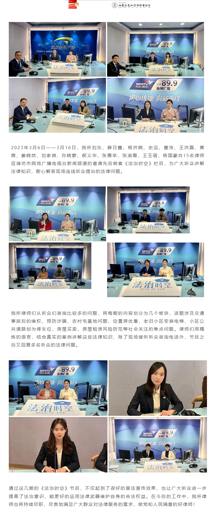 求是和信律师做客潍坊市广播电视台新闻频道“法治时空”栏目 来源:求是和信网 日期:2023-03-22 15:37 发布人:qshx 浏览量: 2094 上一篇:成强律师受邀为奎文区各部门执法人员作专题授课 下一篇:求是和信涉外法律服务之路
