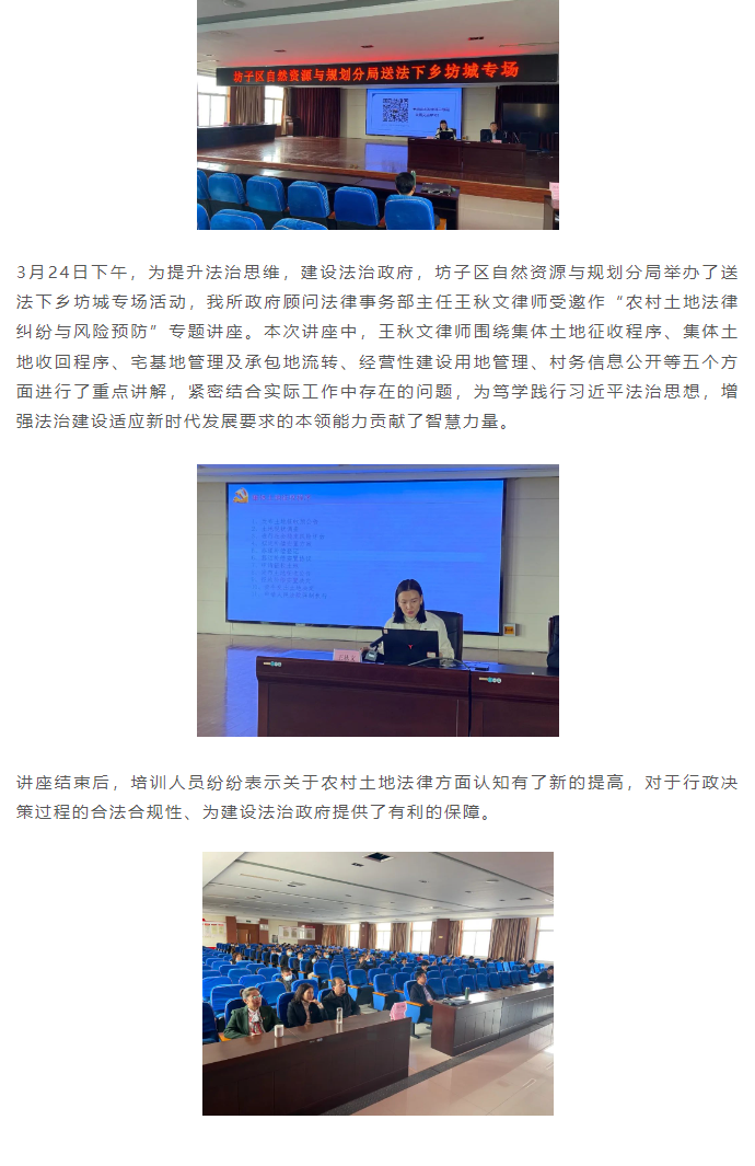 王秋文律师受邀参加坊子区自然资源与规划分局举办的送法下乡坊城专场活动 来源:求是和信网 日期:2023-03-25 15:46 发布人:qshx 浏览量: 1513 上一篇:王平律师应邀到中海地产、潍坊日向友好学校举办讲座 下一篇:求是和信涉外法律服务之路