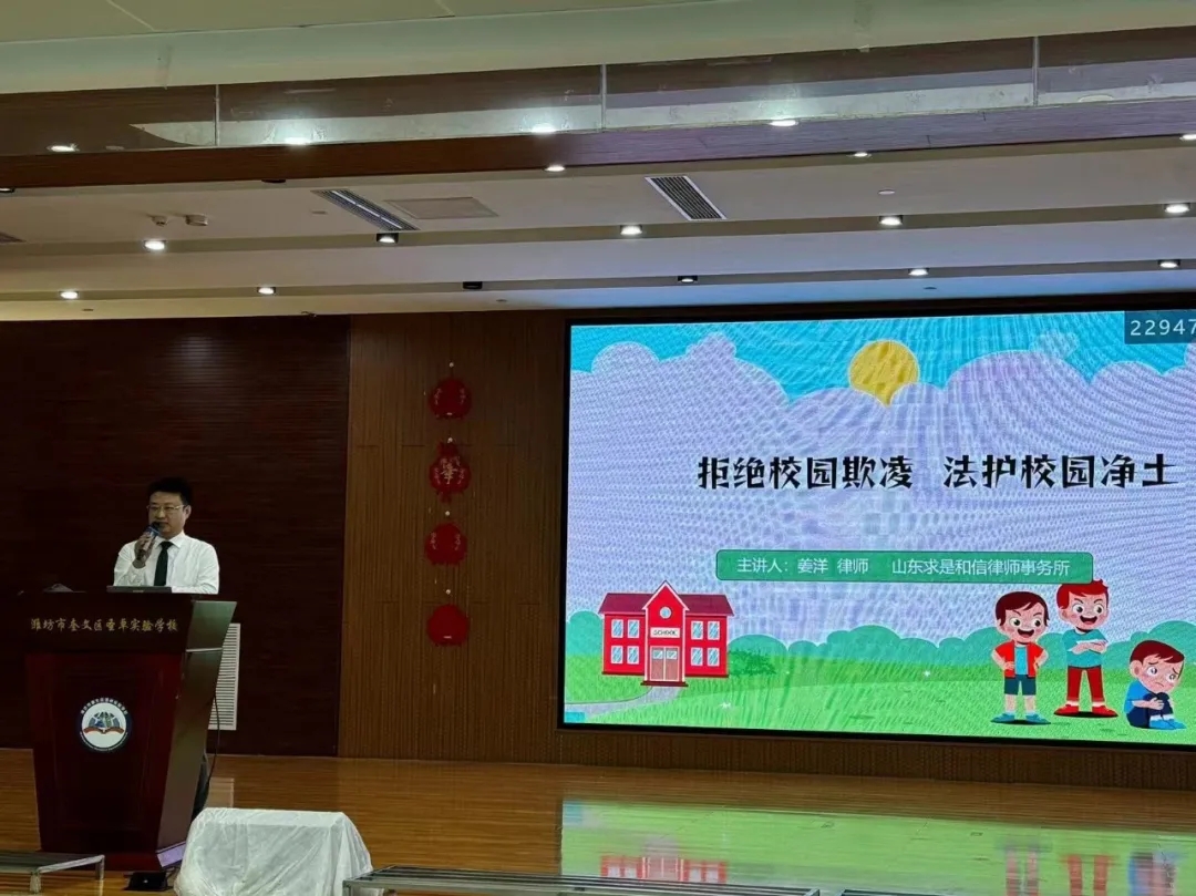 拒绝校园欺凌,守护从我做起——我所姜洋律师受邀为潍坊市奎文区圣卓实验学校开展公益宣讲活动