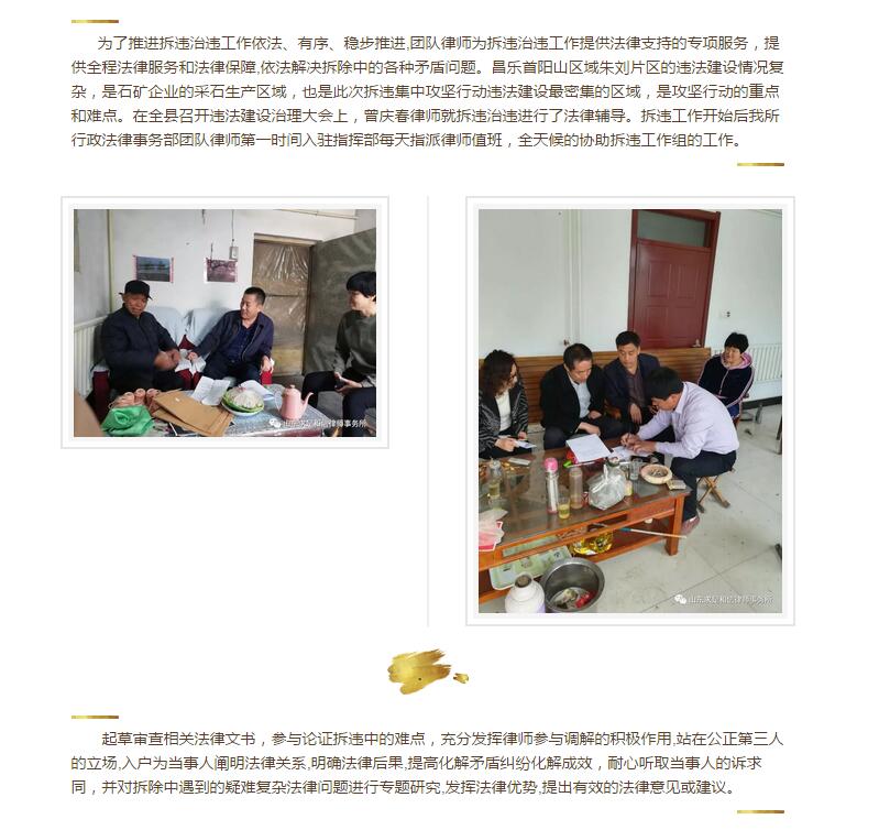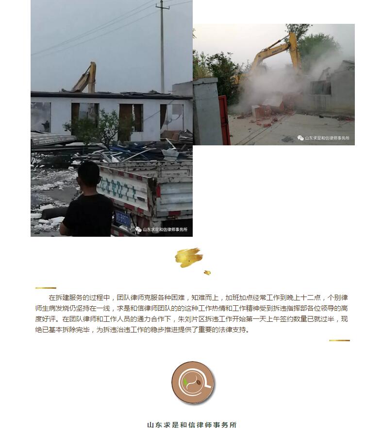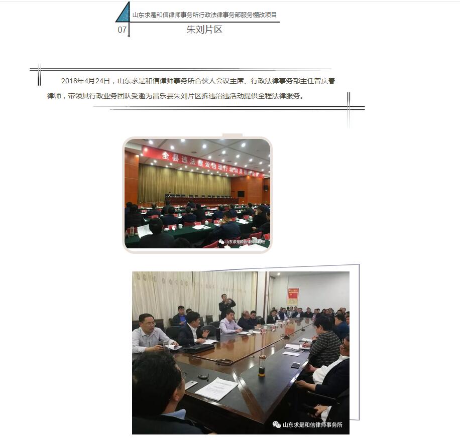 山东求是和信律师事务所行政法律事务部服务棚改项目(七)--朱刘片区 来源:求是和信网 日期:2018-05-03 17:37 发布人:qshx 浏览量: 3580 上一篇:山东求是和信律师事务所曾庆春律师应邀为滨海经济开发区管委会进行法律授课 下一篇:求是动态 | 我所青年律师闪耀“大成杯”诉辩赛场 专业素养与团队协作铸就卓越战绩