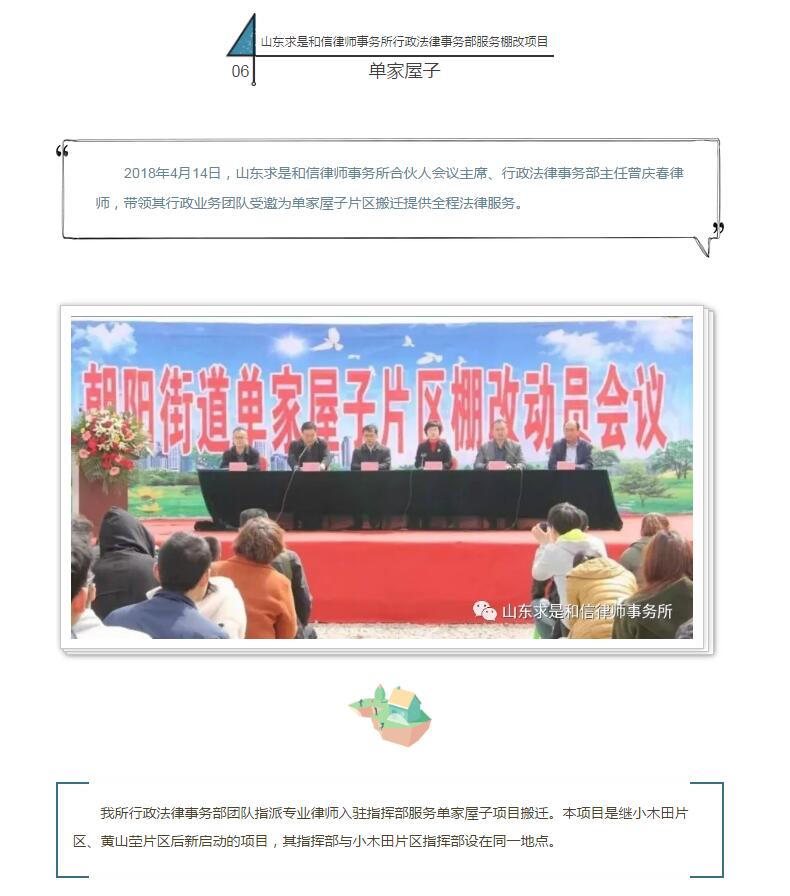 山东求是和信律师事务所行政法律事务部服务棚改项目(六)单家屋子 来源:求是和信网 日期:2018-05-03 17:30 发布人:qshx 浏览量: 723 上一篇:山东求是和信律师事务所行政法律事务部服务棚改项目(五)首阳山片区 下一篇:求是动态 | 我所青年律师闪耀“大成杯”诉辩赛场 专业素养与团队协作铸就卓越战绩