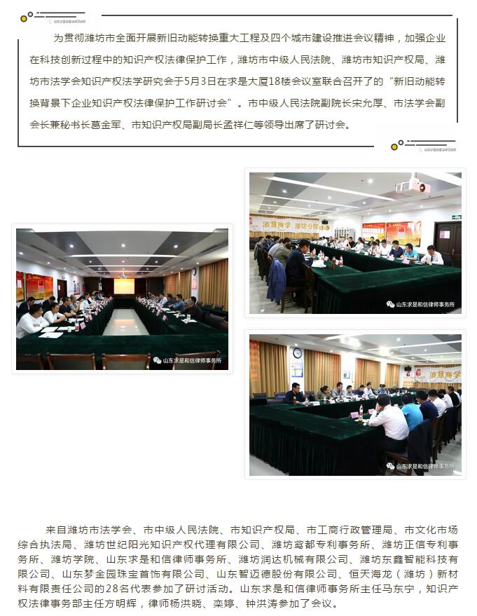 新旧动能转换背景下企业知识产权法律保护工作研讨会顺利召开