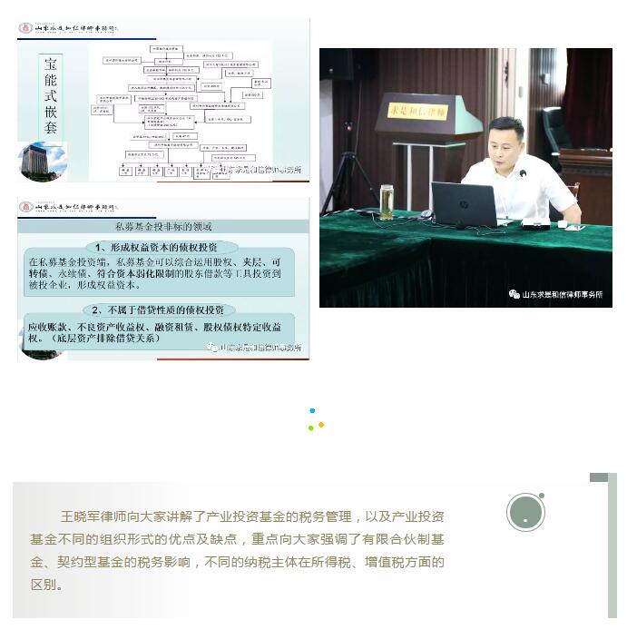 山东求是和信律师事务所陶书健、王晓军律师在全所集体学习中为大家介绍私募基金业务 来源:求是和信网 日期:2018-06-04 16:07 发布人:qshx 浏览量: 883 上一篇:山东求是和信律师事务所王晓峰律师受邀为市女企协“新时代、新女性、新财富”活动授课 下一篇:求是动态 | 我所青年律师闪耀“大成杯”诉辩赛场 专业素养与团队协作铸就卓越战绩