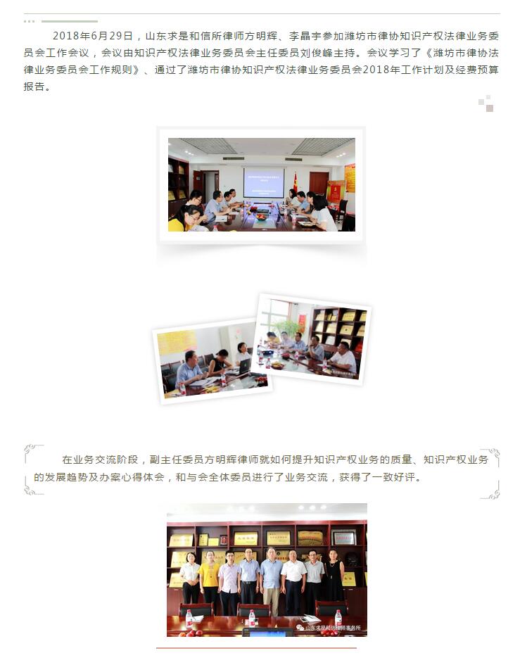 潍坊市律协知识产权法律业务委员会第一次会议召开 来源:求是和信网 日期:2018-07-02 08:59 发布人:qshx 浏览量: 753 上一篇:山东求是和信律师事务所方明辉律师参加省人大组织开展的立法调研座谈会 下一篇:求是动态 | 我所青年律师闪耀“大成杯”诉辩赛场 专业素养与团队协作铸就卓越战绩