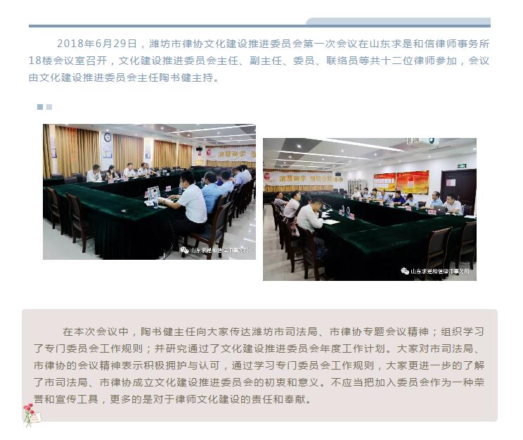 潍坊市律协文化建设推进委员会召开第一次会议 来源:求是和信网 日期:2018-07-02 09:01 发布人:qshx 浏览量: 709 上一篇:潍坊市律协知识产权法律业务委员会第一次会议召开 下一篇:求是动态 | 我所青年律师闪耀“大成杯”诉辩赛场 专业素养与团队协作铸就卓越战绩