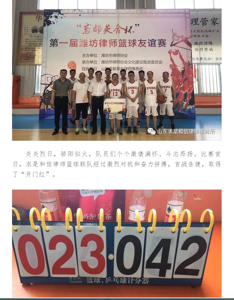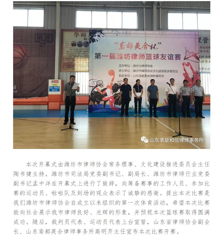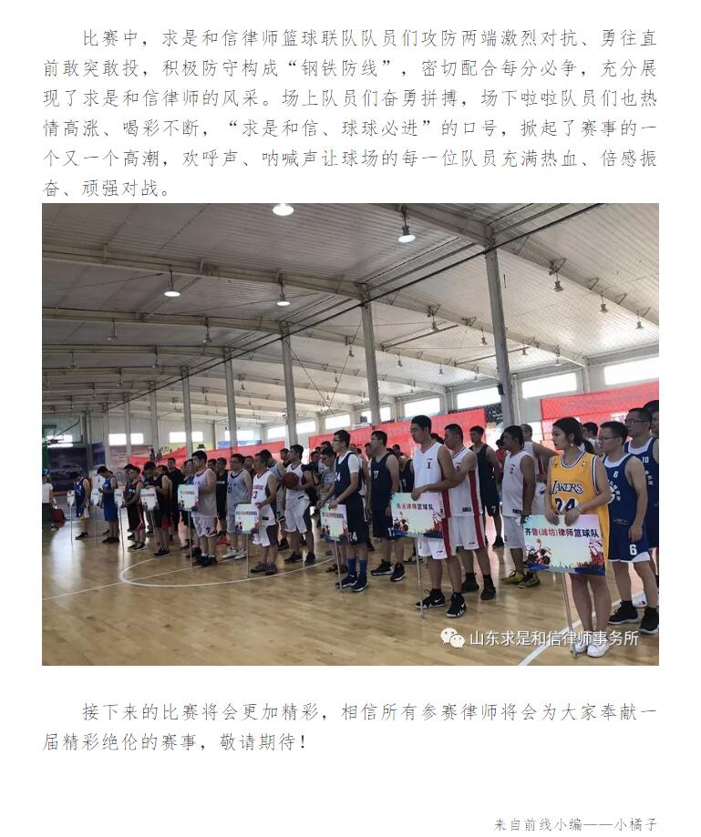 第一届潍坊律师篮球友谊赛火爆开幕,求是和信律师篮球联队首战告捷 来源:求是和信网 日期:2018-08-13 10:38 发布人:qshx 浏览量: 804 上一篇:生态环境部:环评公众参与过程弄虚作假将被严惩 下一篇:求是动态 | 我所青年律师闪耀“大成杯”诉辩赛场 专业素养与团队协作铸就卓越战绩