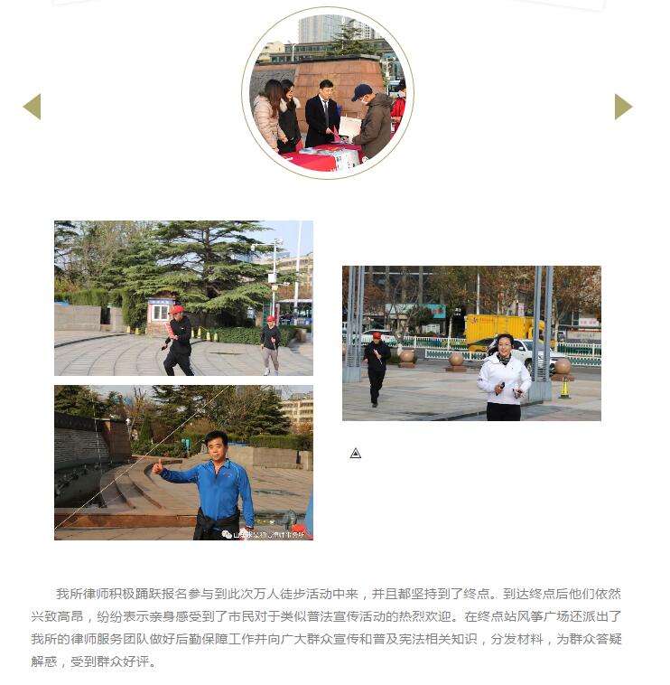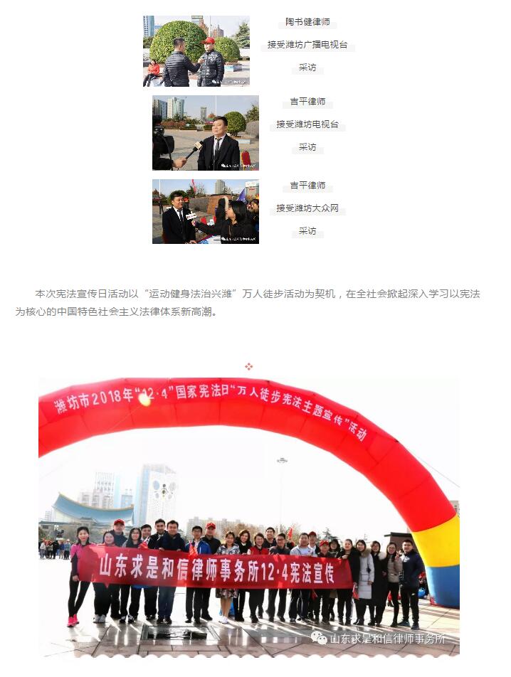 山东求是和信律师事务所参加潍坊市2018年“12.4”国家宪法日“运动健身 法治兴潍”万人徒步宪法主题宣传活动 来源:求是和信网 日期:2018-12-05 14:08 发布人:qshx 浏览量: 1206 上一篇:山东求是和信律师事务所刘世伟律师到北京盈科杭州分所、浙江泰杭所参观学习 下一篇:求是动态 | 我所青年律师闪耀“大成杯”诉辩赛场 专业素养与团队协作铸就卓越战绩
