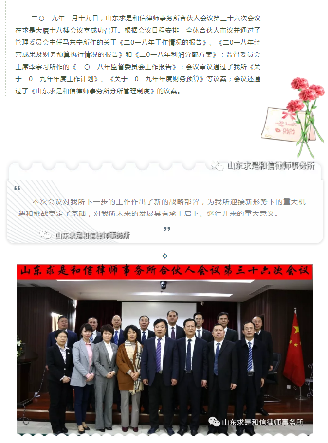 山东求是和信律师事务所合伙人会议第三十六次会议成功召开 来源:求是和信网 日期:2019-02-25 14:11 发布人:qshx 浏览量: 1112 上一篇:年会特辑|坚守初心 筑梦百年 —用奋斗点亮幸福 下一篇:求是动态 | 我所青年律师闪耀“大成杯”诉辩赛场 专业素养与团队协作铸就卓越战绩
