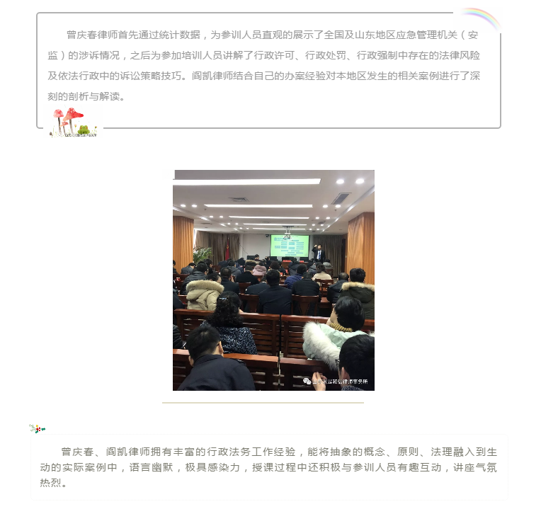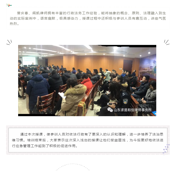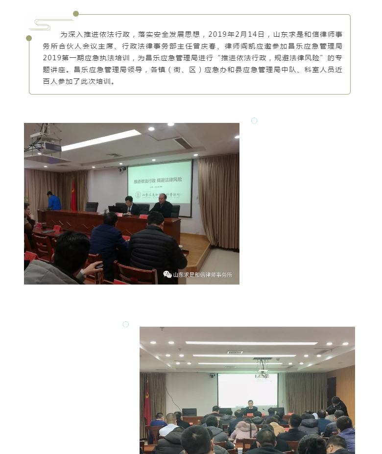 山东求是和信律师事务所曾庆春、阎凯律师为昌乐县应急管理局开展依法行政专题培训