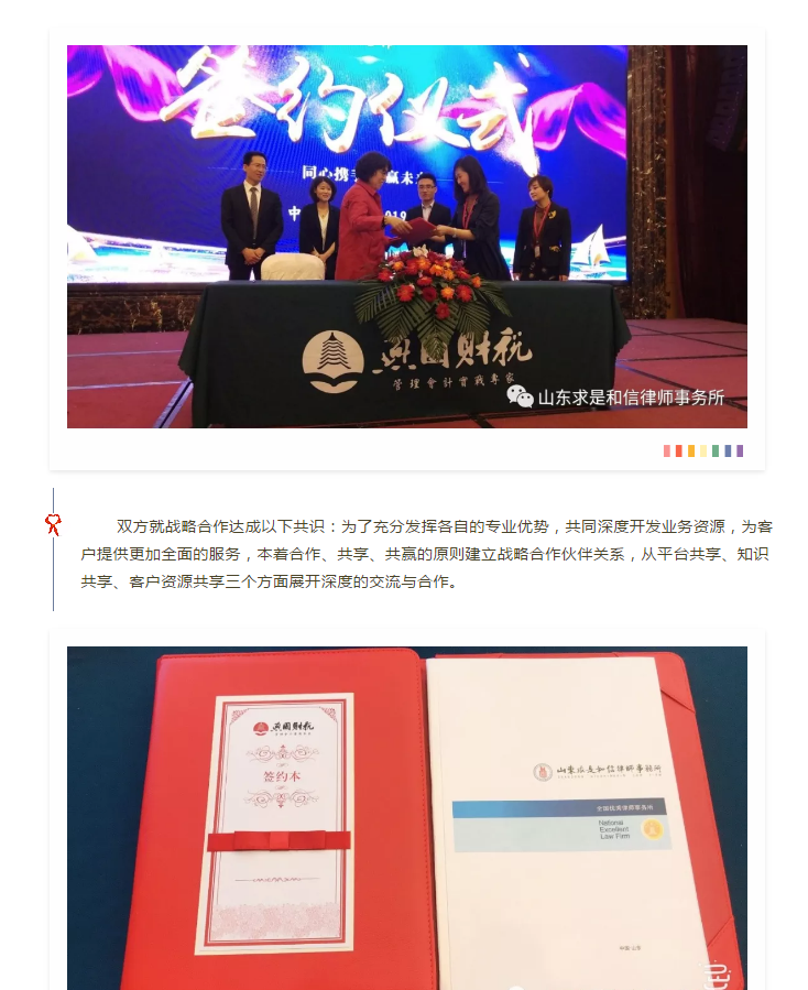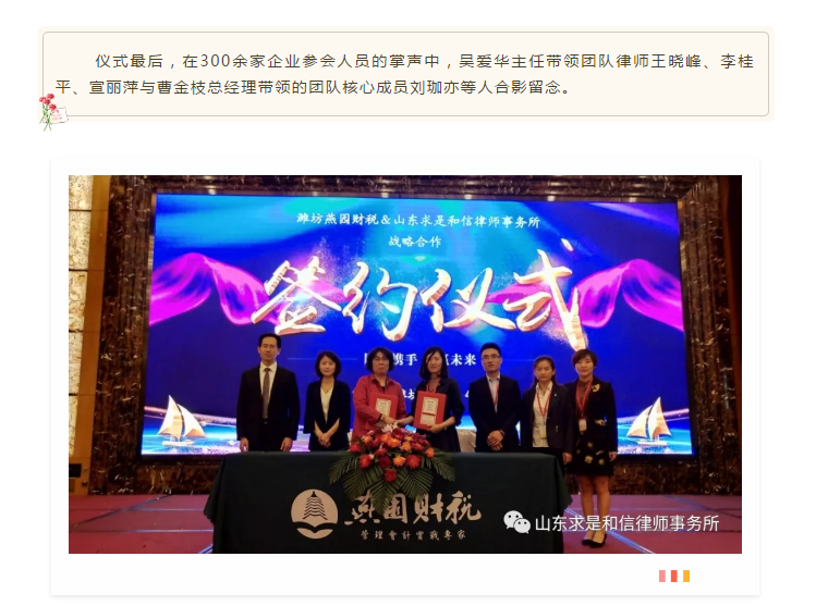 山东求是和信律师事务所&潍坊燕园财税战略合作签约 来源:求是和信网 日期:2019-04-28 15:45 发布人:qshx 浏览量: 717 上一篇:民事执行实务疑难法律适用问题分享 下一篇:求是动态 | 我所青年律师闪耀“大成杯”诉辩赛场 专业素养与团队协作铸就卓越战绩