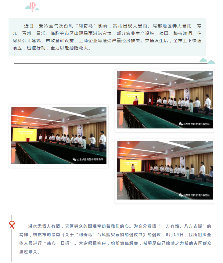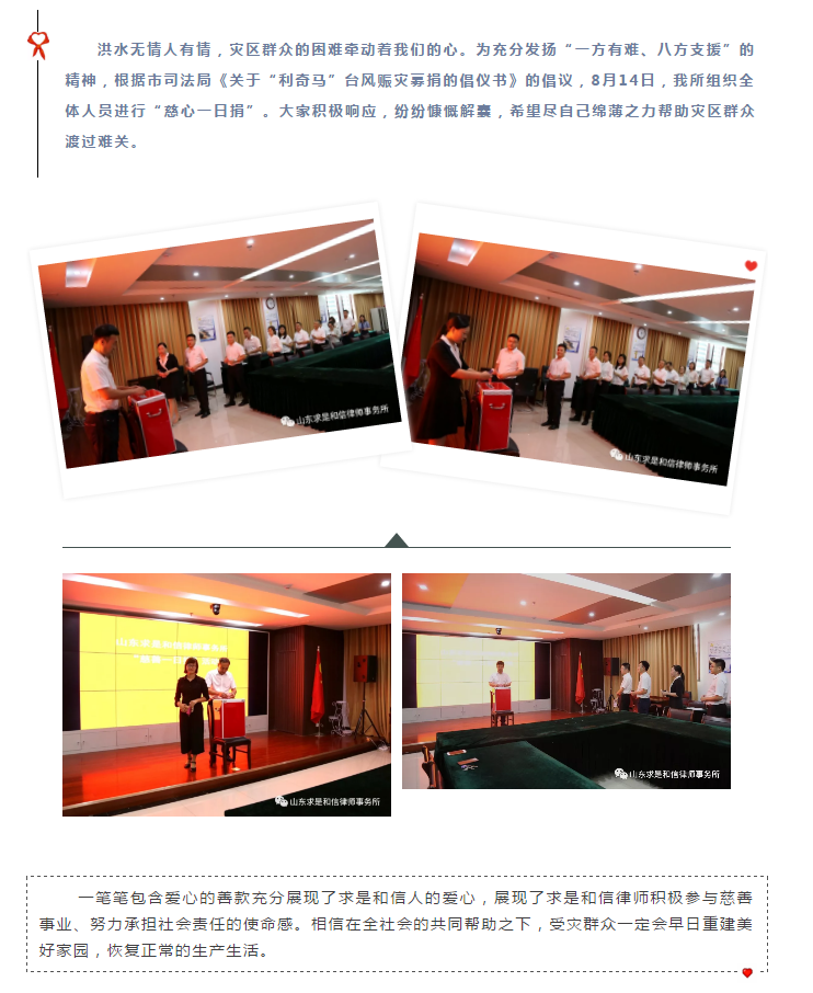 团结一心 众志成城 ——山东求是和信律师事务所举行“慈心一日捐 来源:求是和信网 日期:2019-08-15 11:54 发布人:qshx 浏览量: 865 上一篇:山东求是和信律师事务所三名律师参加全省律师辩论赛载誉而归 下一篇:求是动态 | 我所青年律师闪耀“大成杯”诉辩赛场 专业素养与团队协作铸就卓越战绩