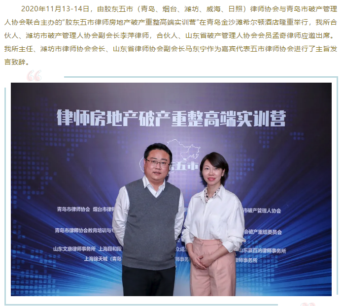 『求是资讯』我所李萍、孟奇律师应邀出席胶东五市律师房地产破产重整高端实训营