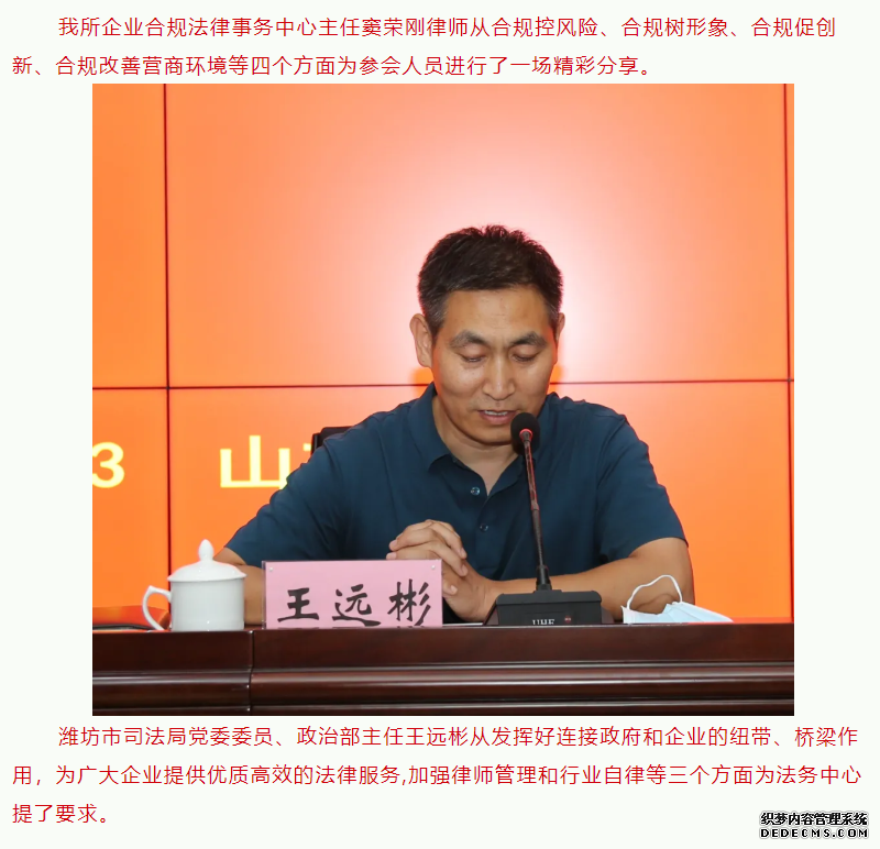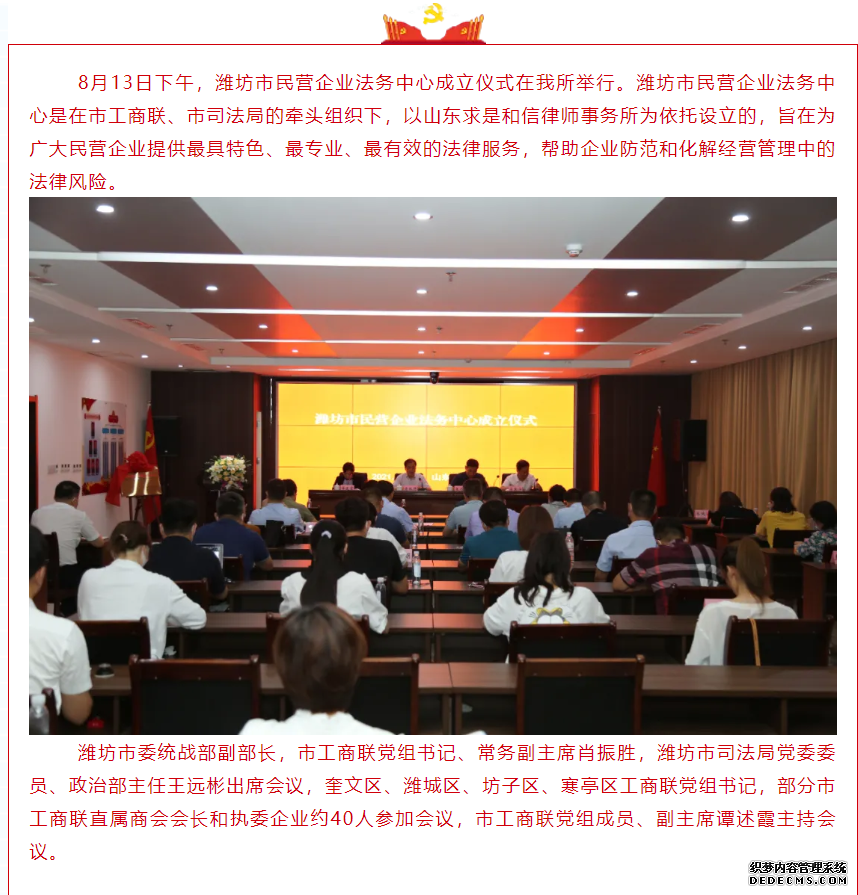 潍坊市民营企业法务中心成立仪式在我所举行 来源:求是和信网 日期:2021-08-30 10:48 发布人:qshx 浏览量: 3264 上一篇:我所曾庆春律师荣获“潍坊市直司法行政系统优秀共产党员称号” 下一篇:求是动态 | 我所青年律师闪耀“大成杯”诉辩赛场 专业素养与团队协作铸就卓越战绩