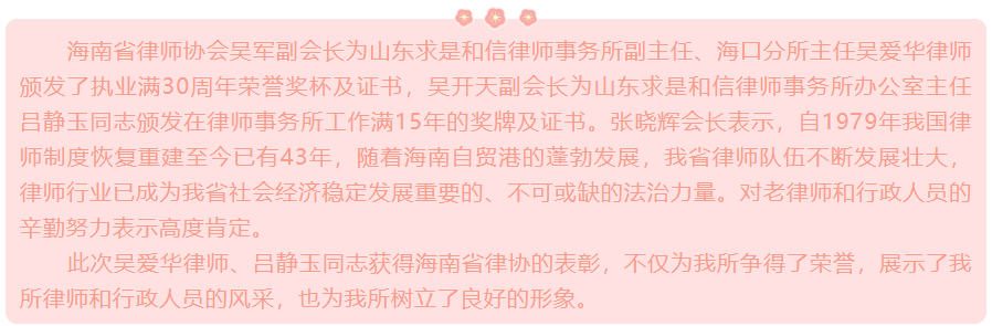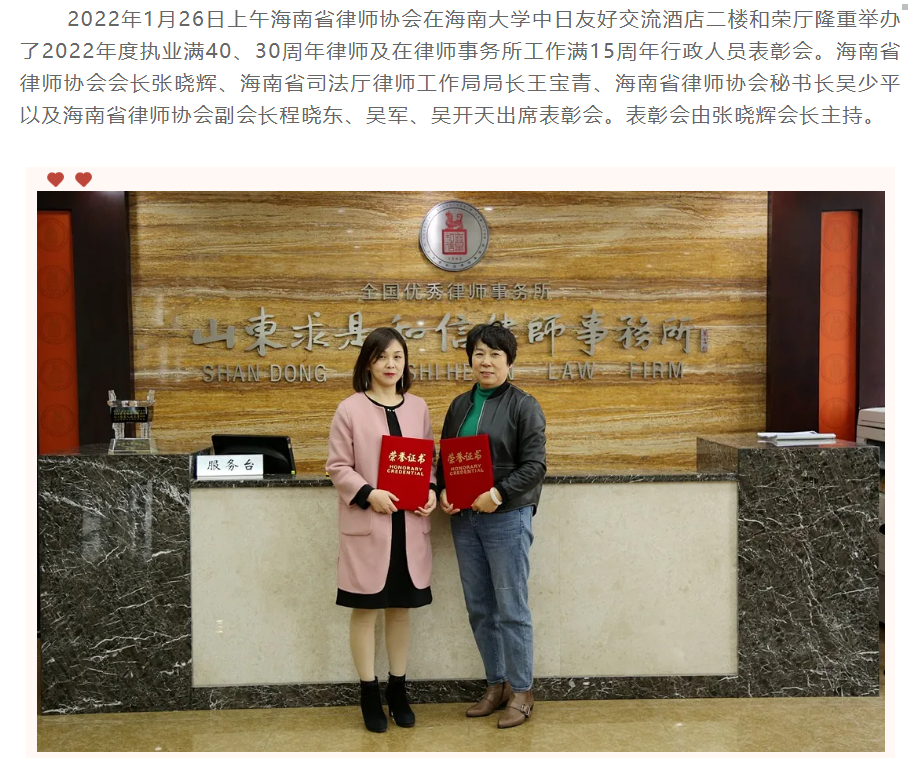 『求是资讯』我所海口分所主任吴爱华律师、办公室主任吕静玉同志受到海南省律师协会表彰 来源:求是和信网 日期:2022-02-17 10:34 发布人:qshx 浏览量: 3029 上一篇:『求是资讯』我所受托起草的《潍坊市物业管理条例》获得批准 下一篇:求是动态 | 我所青年律师闪耀“大成杯”诉辩赛场 专业素养与团队协作铸就卓越战绩