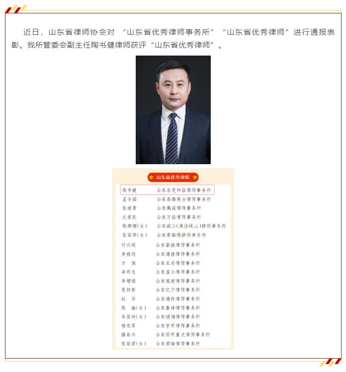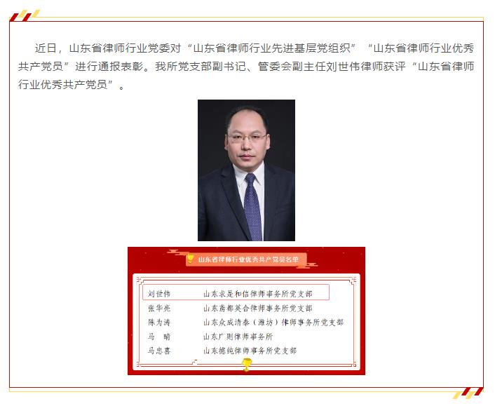 求是动态 | 我所刘世伟律师、陶书健律师分别获评“山东省律师行业优秀共产党员”和“山东省优秀律师”