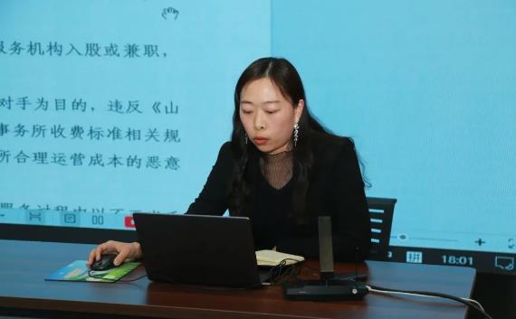 纪律委员会委员栾婷律师以《执业纪律学习》为题,围绕《山东求是和信律师事务所业务管理制度》《山东求是和信律师事务所业务督察办法》等规章制度,对律师执业行为进行了全面梳理与详细解读。同时,针对《关于开展全市律师行业规范收案收费执业活动专项行动方案》中明确的执业禁区和执业红线,逐条进行深入分析,结合典型违规案例,精准剖析法条内涵,切实帮助律师准确识别执业风险点,增强风险防范意识。