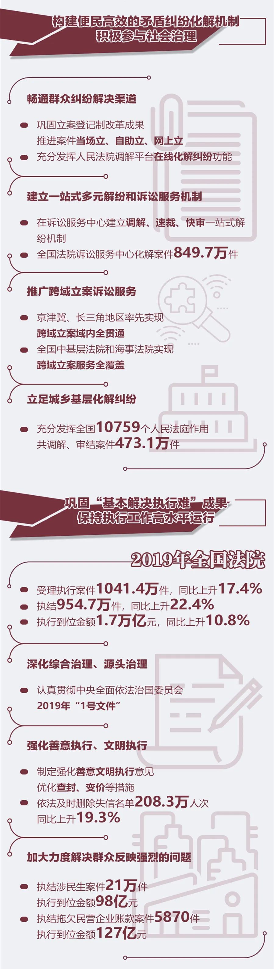 2019年人民法院都做了哪些工作?面对新冠肺炎疫情,人民法院如何做好司法服务和保障?2020年又有哪些工作计划?