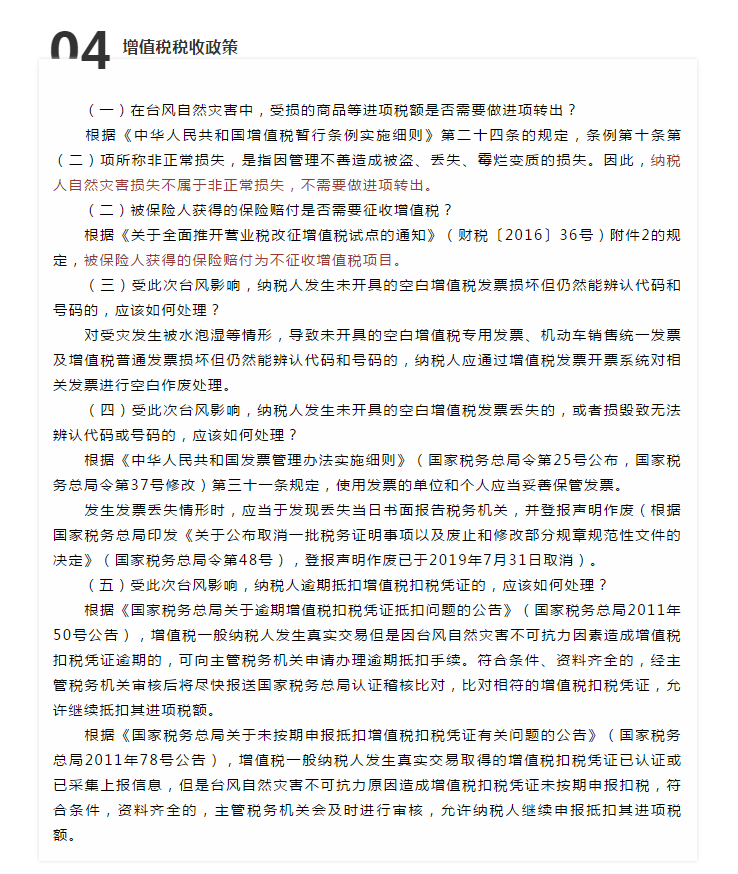 『政策解读』台风灾后,企业可以利用这些税收优惠政策 来源:求是和信网 日期:2019-08-15 10:48 发布人:qshx 浏览量: 1879 上一篇:税务新规下个人所得如何进行合法节税筹划? 下一篇:履行职责诉讼的类型和裁判方式研究