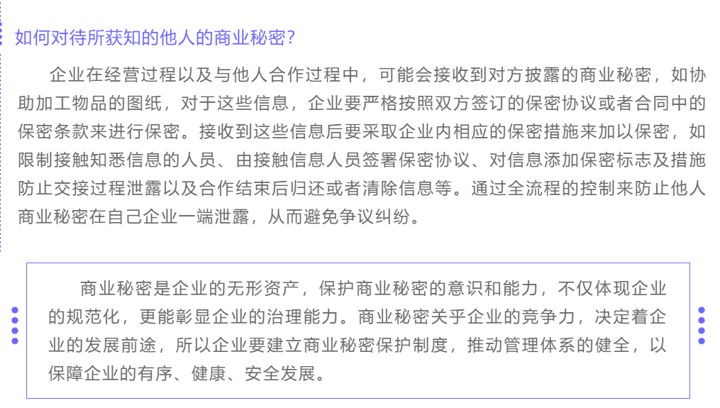 漫谈企业商业秘密保护 来源:求是和信网 日期:2021-04-21 15:40 发布人:栾婷 浏览量: 3162 上一篇:求是和信【公司运营法律事务中心】律师团队:企业实施股权激励的重要意义 下一篇:履行职责诉讼的类型和裁判方式研究