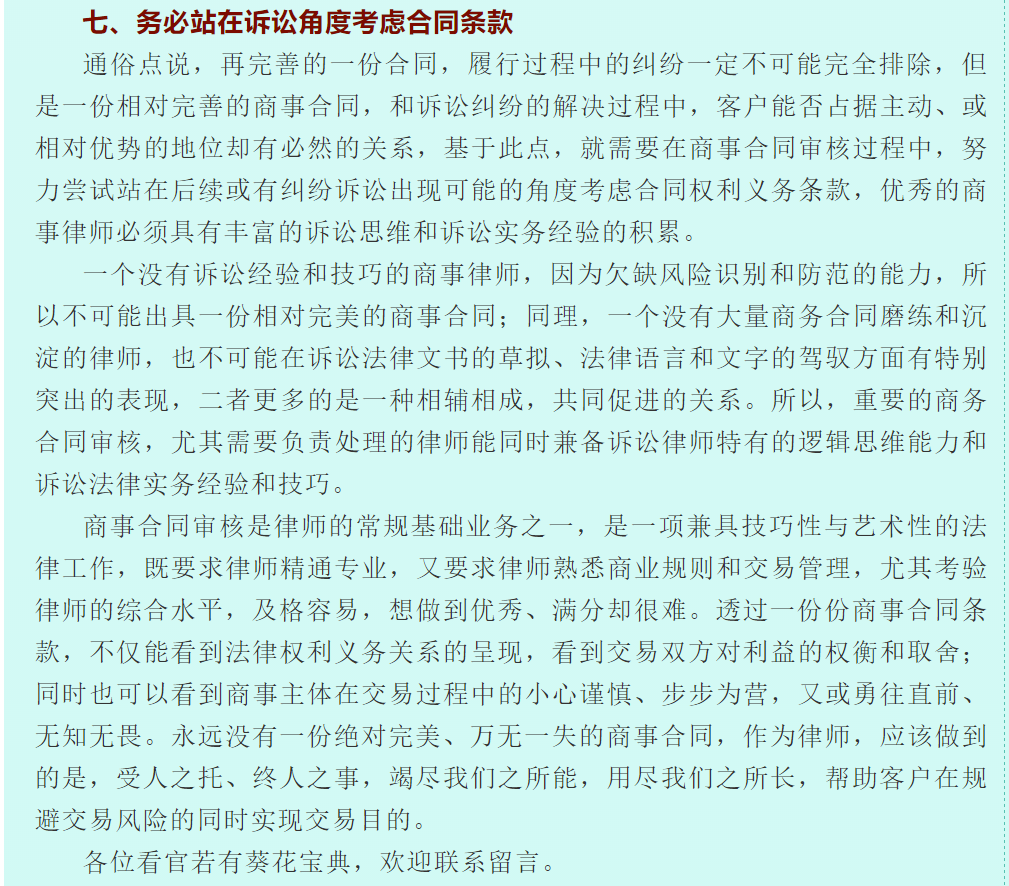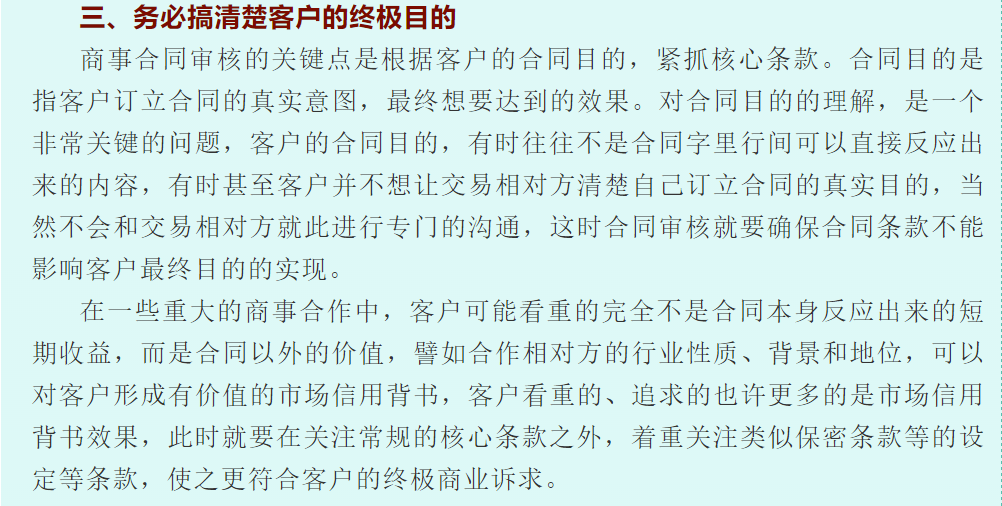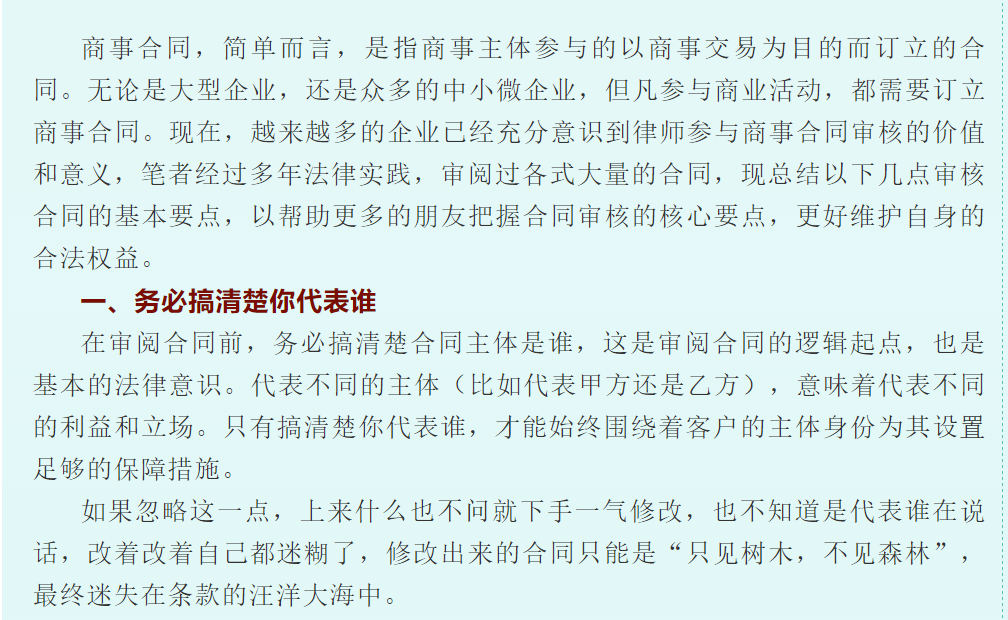 谈商事合同的审查技巧 来源:求是和信网 日期:2021-04-21 15:57 发布人:王萍律师 浏览量: 3543 上一篇:担保制度对于促进资金融通和商品流通,保证债权实现,具有重要的作用。而公司作为社会经济主要的商事主体,为他人提供担保的行为 下一篇:履行职责诉讼的类型和裁判方式研究
