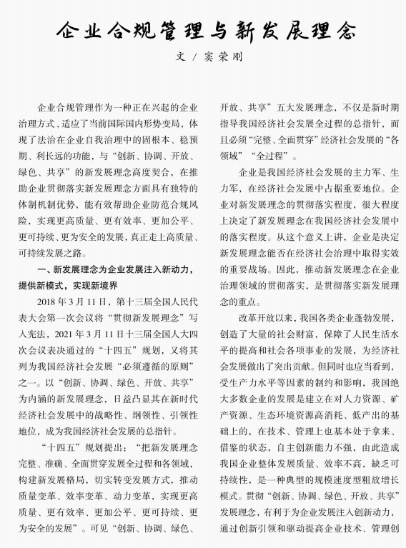 企业合规管理与新发展理念 来源:求是和信网 日期:2022-01-10 13:56 发布人:qshx 浏览量: 5202 上一篇:排除妨碍请求权、派出妨害请求权的相关法律问题探析 下一篇:履行职责诉讼的类型和裁判方式研究