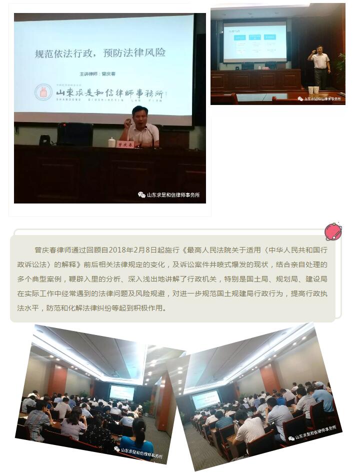 山东求是和信律师事务所曾庆春律师受邀为滨海国土规建局进行依法行政法律培训