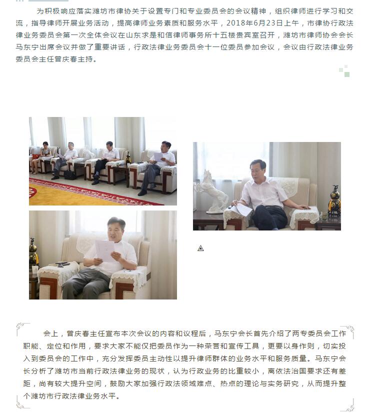 潍坊市律协行政法律业务委员会第一次全体会议召开 来源:求是和信网 日期:2018-06-29 09:49 发布人:qshx 浏览量: 703 上一篇:山东求是和信律师事务所曾庆春律师受邀为滨海国土规建局进行依法行政法律培训 下一篇:求是动态 | 我所青年律师闪耀“大成杯”诉辩赛场 专业素养与团队协作铸就卓越战绩