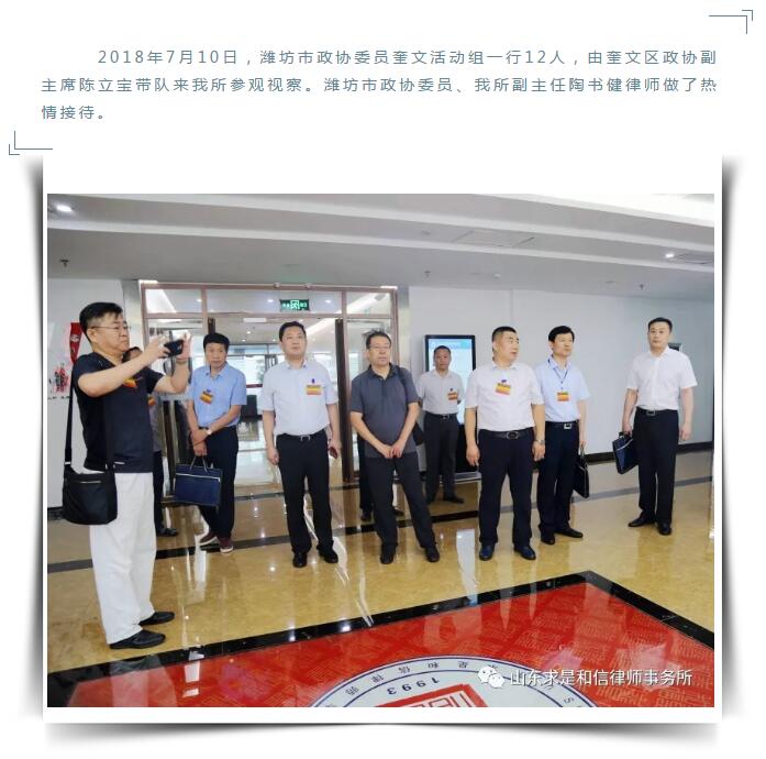 潍坊市政协委员奎文活动组莅临山东求是和信律师事务所视察指导