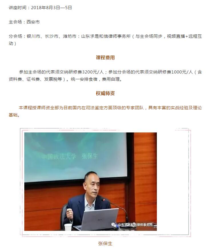 司法鉴定意见质证和法庭发问技巧高级研修班 来源:求是和信网 日期:2018-07-24 11:17 发布人:qshx 浏览量: 730 上一篇:南京市法学会考察团到市法学会知识产权法学研究会参观考察 下一篇:求是动态 | 我所青年律师闪耀“大成杯”诉辩赛场 专业素养与团队协作铸就卓越战绩