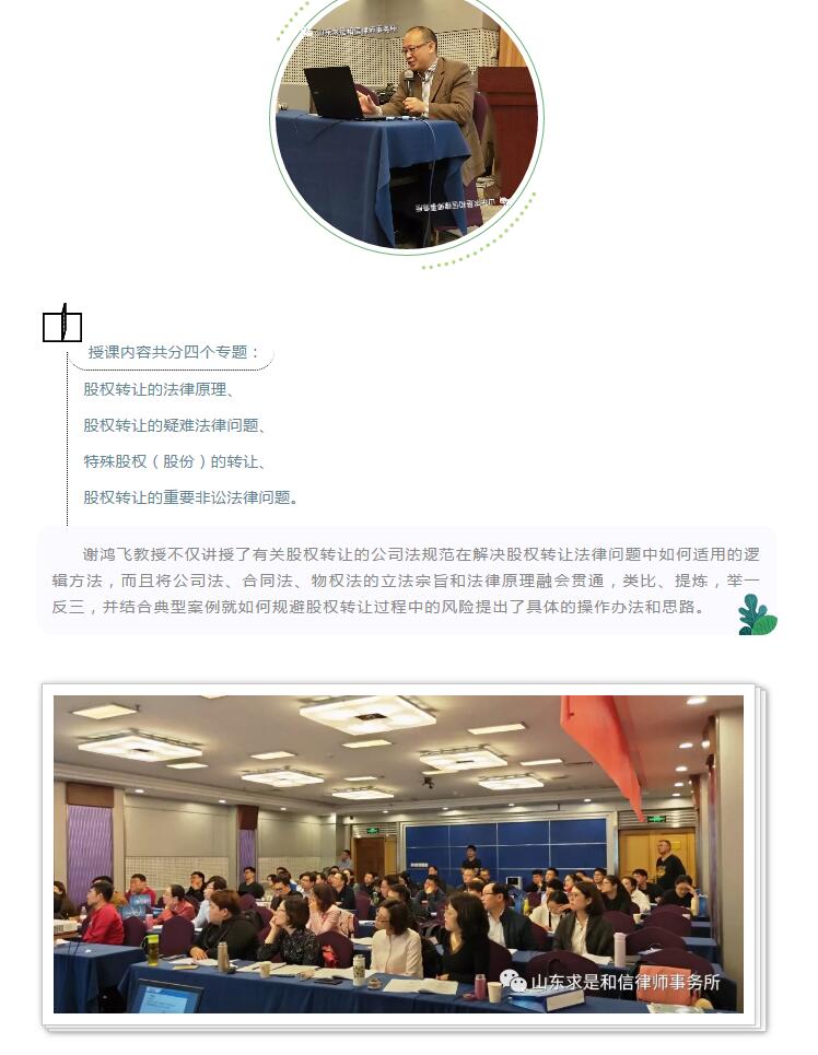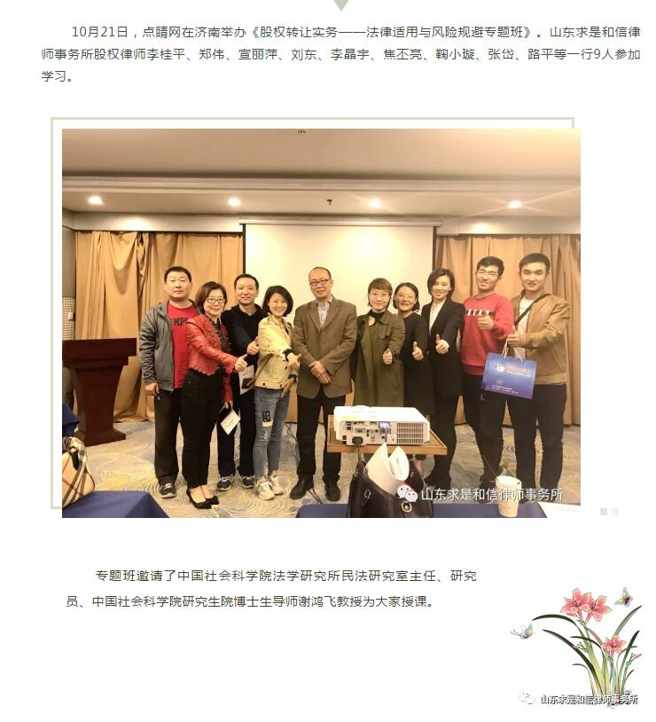 山东求是和信律师事务所律师参加点睛网举办的股权转让实务专题培训班