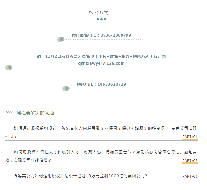 『讲座通知』2018“求是和信公益大讲堂”之四 山东求是和信律师事务所与光电产业园T空间联合举办 “新时代动态股权设计”