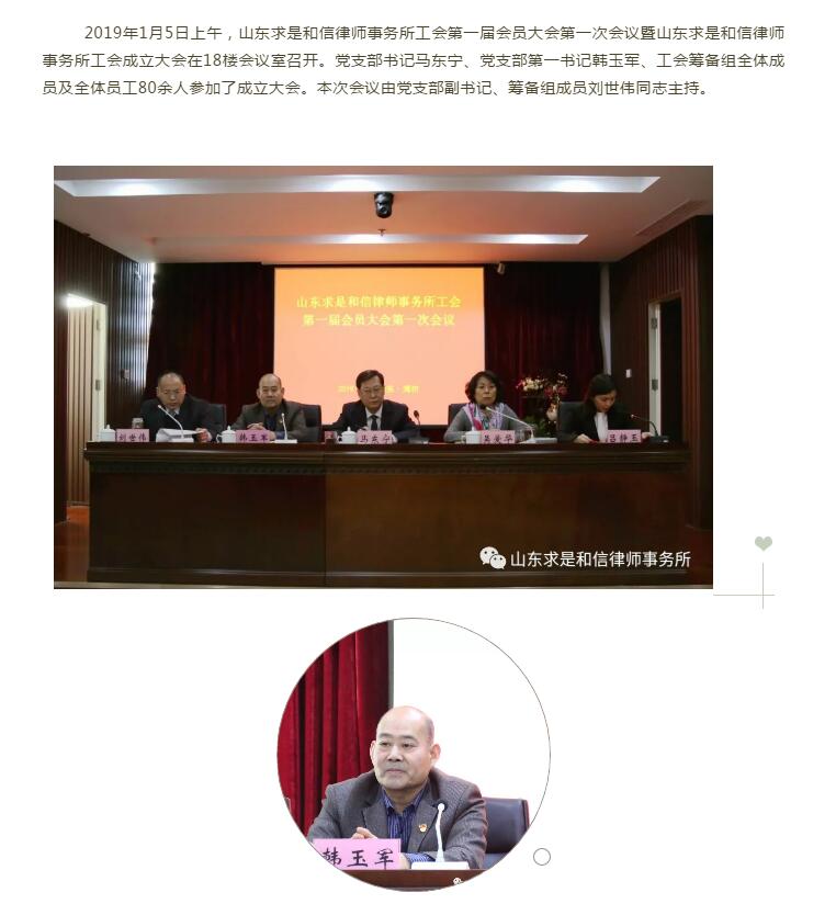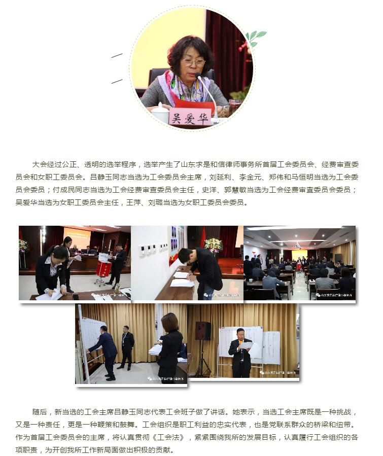 山东求是和信律师事务所工会第一届会员大会第一次会议胜利召开 来源:求是和信网 日期:2019-01-07 13:55 发布人:qshx 浏览量: 861 上一篇:山东求是和信律师事务所曾庆春、王秋文律师为滨海国土规建局开展依法行政专题培训 下一篇:求是动态 | 我所青年律师闪耀“大成杯”诉辩赛场 专业素养与团队协作铸就卓越战绩