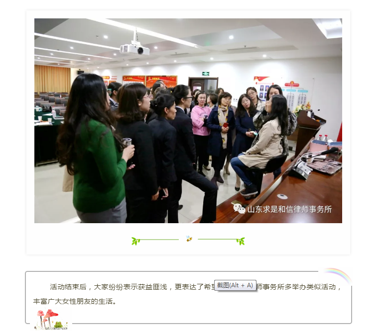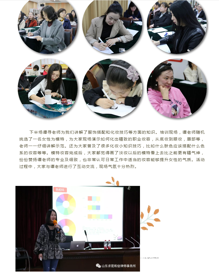 山东求是和信律师事务所"女神品质形象升级讲堂"成功开讲 来源:求是和信网 日期:2019-04-15 16:47 发布人:qshx 浏览量: 873 上一篇:山东求是和信律师事务所曾庆春主任、刘东律师参加“律师在化解行政争议、推动法治山东建设中的作用”座谈会 下一篇:求是动态 | 我所青年律师闪耀“大成杯”诉辩赛场 专业素养与团队协作铸就卓越战绩