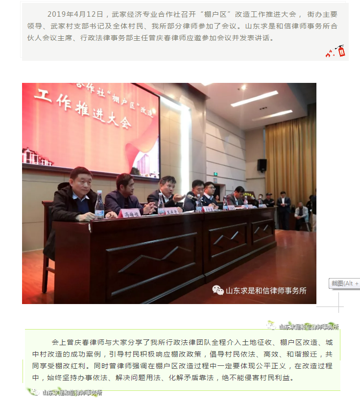 山东求是和信律师事务所曾庆春律师参加武家经济专业合作社召开“棚户区”改造工作推进大会 来源:求是和信网 日期:2019-04-15 17:00 发布人:qshx 浏览量: 910 上一篇:山东求是和信律师事务所王萍、张彩云律师受聘担任奎文区检察院民事行政检察监督案件专家委员会委员 下一篇:求是动态 | 我所青年律师闪耀“大成杯”诉辩赛场 专业素养与团队协作铸就卓越战绩