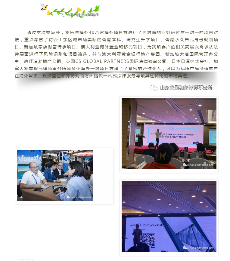 山东求是和信律师事务所孟奇律师出席第21届2019移投行业精英交流盛会 来源:求是和信网 日期:2019-06-13 09:51 发布人:qshx 浏览量: 1157 上一篇:山东求是和信律师事务所行政法律服务团队为诸城、坊子、寒亭、寿光棚户区改造“清零项目”提供法律服务 下一篇:求是动态 | 我所青年律师闪耀“大成杯”诉辩赛场 专业素养与团队协作铸就卓越战绩