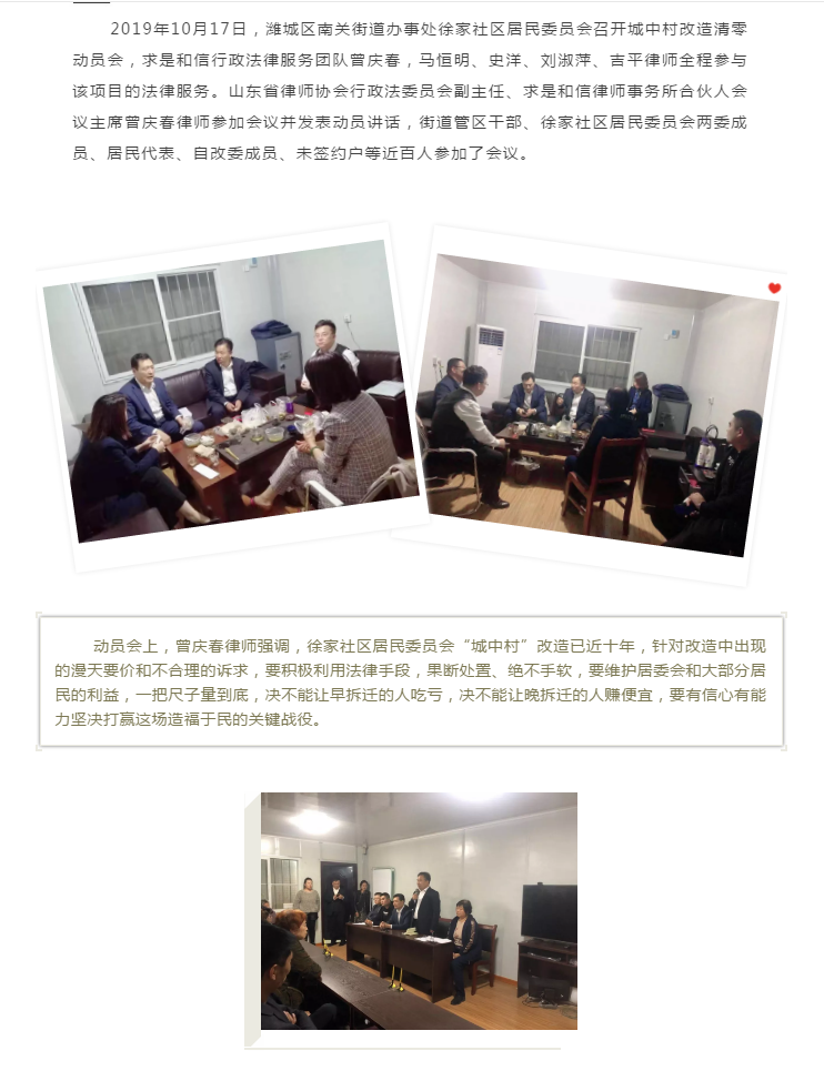 山东求是和信律师事务所行政法律团队为潍城区徐家“城中村”改造提供征迁法律服务