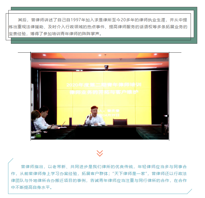 山东求是和信律师事务所举办青年律师培训 来源:求是和信网 日期:2020-05-08 16:46 发布人:qshx 浏览量: 836 上一篇:山东求是和信律师事务所路平律师做客“银龄之声”节目 下一篇:求是动态 | 我所青年律师闪耀“大成杯”诉辩赛场 专业素养与团队协作铸就卓越战绩