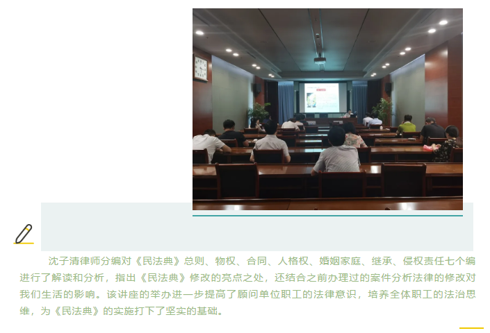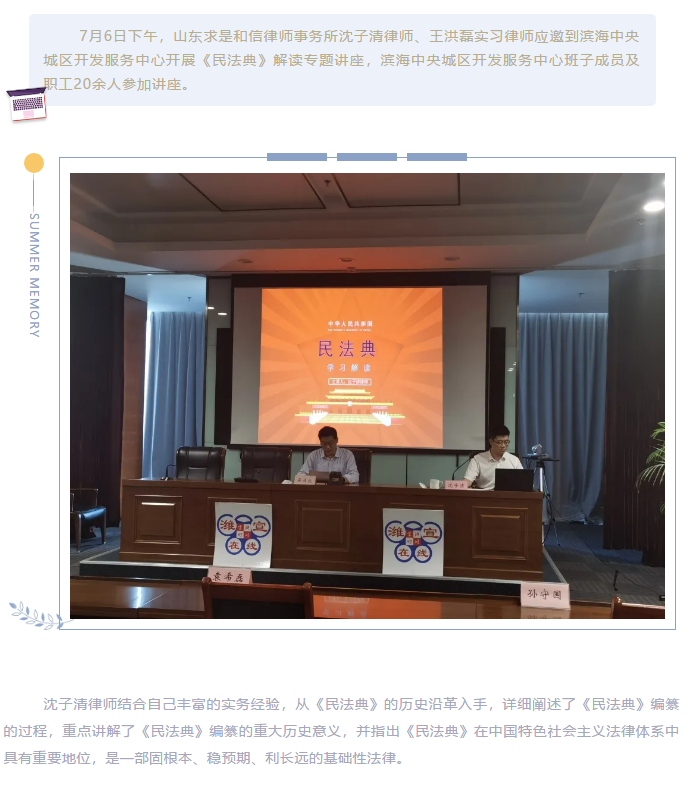 山东求是和信律师事务所沈子清律师应邀到滨海中央城区开发服务中心解读《民法典》