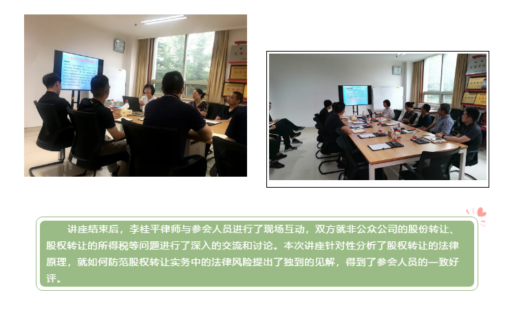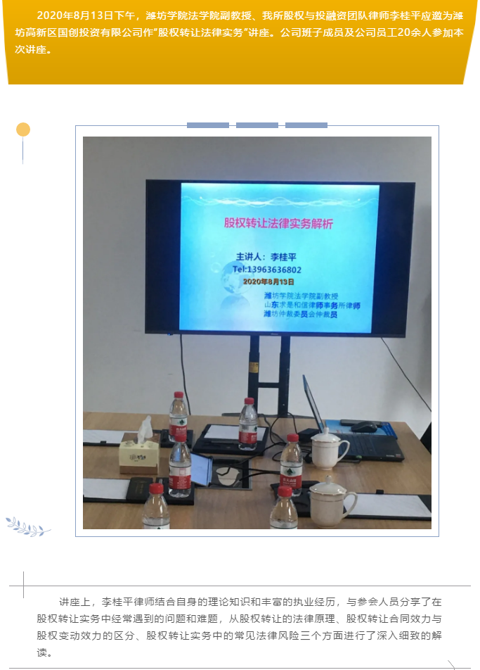 山东求是和信律师事务所李桂平律师应邀为潍坊高新区国创投资有限公司作“股权转让法律实务”讲座