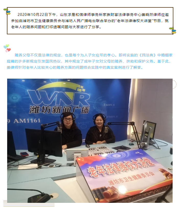 【求是公益】重阳将至 我所姜晓然律师走进“老年法律维权大讲堂” 来源:求是和信网 日期:2020-11-02 15:28 发布人:qshx 浏览量: 2517 上一篇:助老维权 我所王中丽律师走进“老年法律维权大讲堂” 下一篇:求是动态 | 我所青年律师闪耀“大成杯”诉辩赛场 专业素养与团队协作铸就卓越战绩