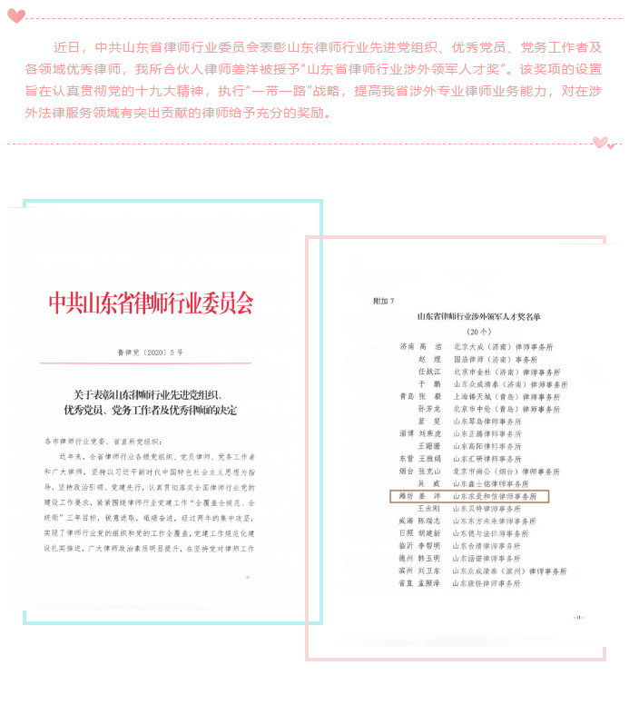 『求是动态』我所姜洋律师荣获“山东省律师行业涉外领军人才奖” 来源:求是和信网 日期:2020-12-23 14:20 发布人:qshx 浏览量: 2289 上一篇:『求是动态』我所举办党的十九届五中全会会议精神集体学习 下一篇:求是动态 | 我所青年律师闪耀“大成杯”诉辩赛场 专业素养与团队协作铸就卓越战绩