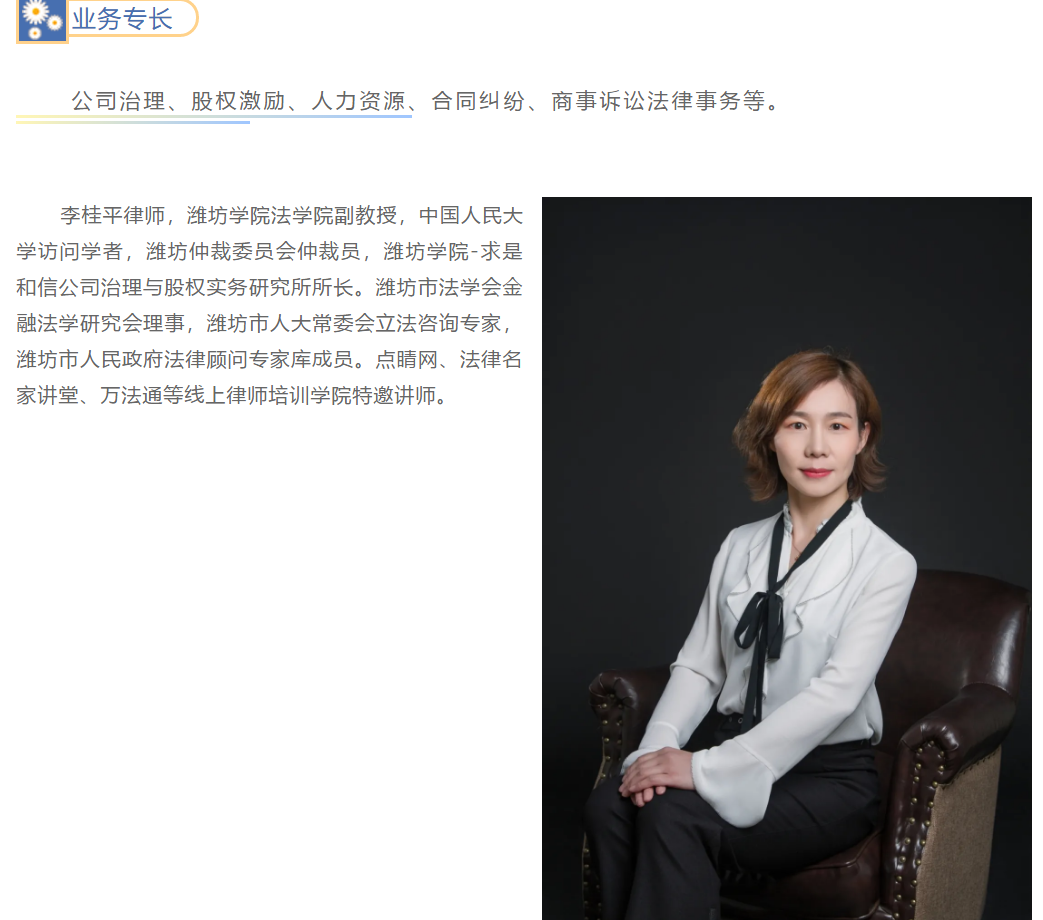 『求是动态』求是和信【公司运营律师团队】王晓峰、李桂平律师应邀为山东沃华医药科技股份有限公司进行股权激励落地辅导 来源:求是和信网 日期:2021-03-17 14:22 发布人:qshx 浏览量: 3068 上一篇:『求是资讯』我所宫惠玲、王平律师应邀为潍坊市妇幼保健院进行《民法典》专题知识讲座 下一篇:求是动态 | 我所青年律师闪耀“大成杯”诉辩赛场 专业素养与团队协作铸就卓越战绩