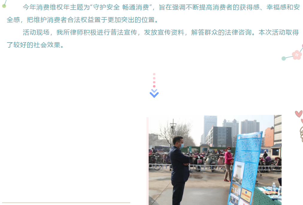 『求是动态』我所律师参加“3.15消费者权益保护日”普法宣传活动 来源:求是和信网 日期:2021-06-10 10:42 发布人:qshx 浏览量: 2629 上一篇:『喜报』祝贺我所被聘为临朐县人民政府法律顾问 山东求是和信律师事务所 5天前 下一篇:求是动态 | 我所青年律师闪耀“大成杯”诉辩赛场 专业素养与团队协作铸就卓越战绩