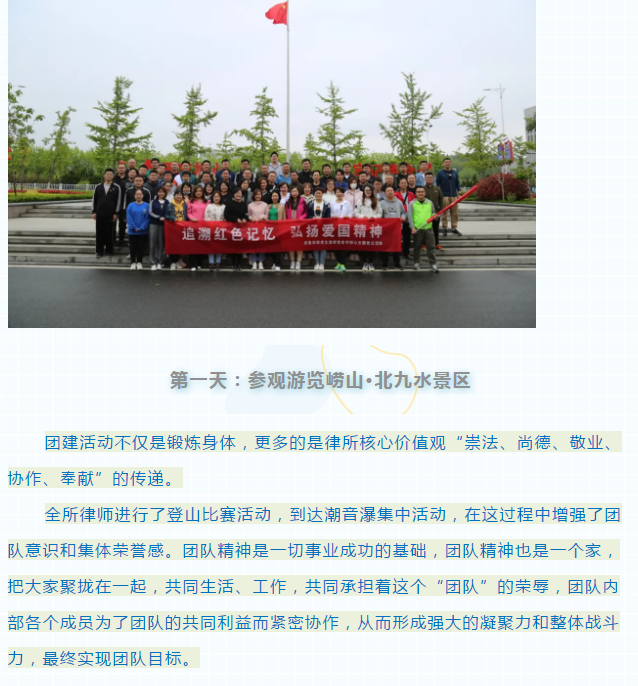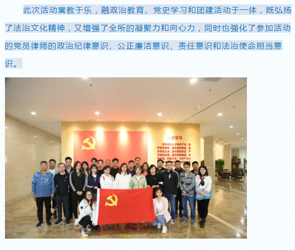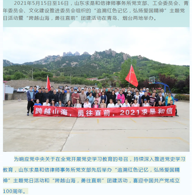 “跨越山海,勇往直前” ——山东求是和信律师事务所举办主题党日团建活动 来源:求是和信网 日期:2021-06-10 11:22 发布人:qshx 浏览量: 2935 上一篇:北京市京师(德州)律师事务所宋国华主任一行到我所参观交流 下一篇:求是动态 | 我所青年律师闪耀“大成杯”诉辩赛场 专业素养与团队协作铸就卓越战绩