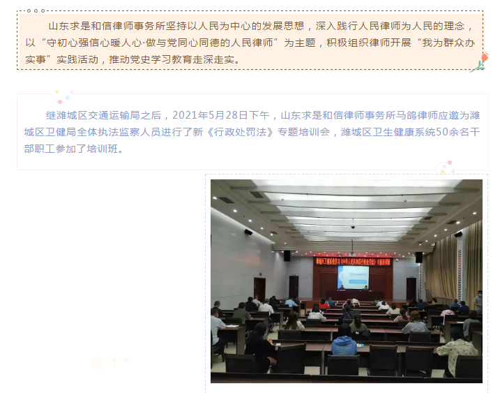 我为群众办实事|求是和信律师在行动 来源:求是和信网 日期:2021-06-08 16:13 发布人:qshx 浏览量: 2075 上一篇:桃之夭夭 灼灼其华|求是专业服务机构联盟青年律师训练营隆重开营 下一篇:求是动态 | 我所青年律师闪耀“大成杯”诉辩赛场 专业素养与团队协作铸就卓越战绩