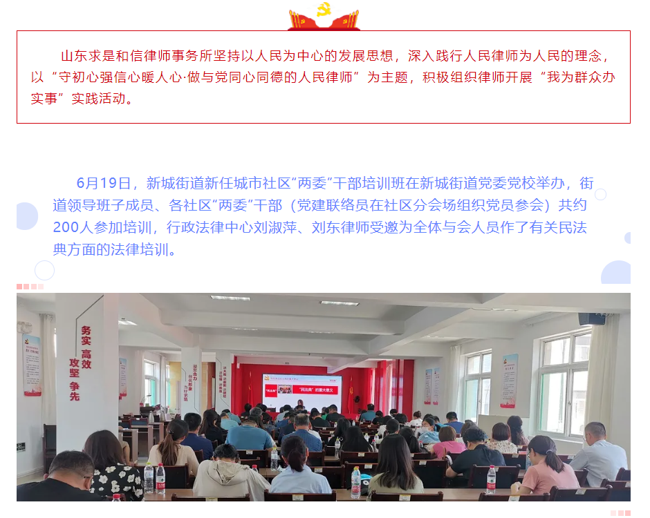 我为群众办实事|求是和信律师在行动(二十三) 来源:求是和信网 日期:2021-06-28 14:31 发布人:qshx 浏览量: 2049 上一篇:『成功案例』我所解得鹏、邹怀辉律师承办的涉食品案件宣告缓刑 下一篇:求是动态 | 我所青年律师闪耀“大成杯”诉辩赛场 专业素养与团队协作铸就卓越战绩