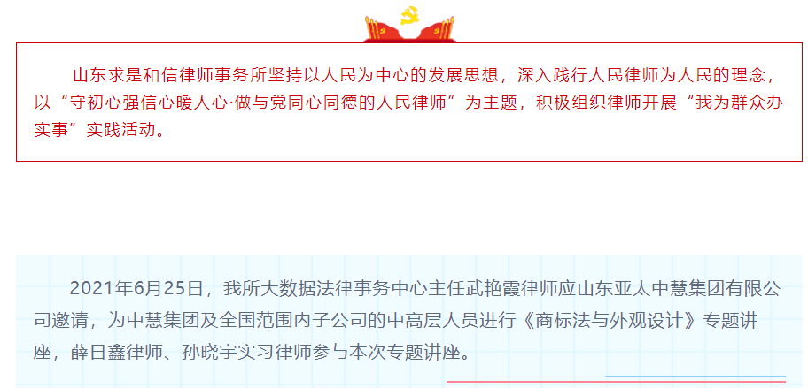 我为群众办实事|求是和信律师在行动(二十五) 来源:求是和信网 日期:2021-06-28 14:41 发布人:qshx 浏览量: 2316 上一篇:『求是动态』山东求是和信律师事务所组织参观全市扫黑除恶专项斗争成果展 下一篇:求是动态 | 我所青年律师闪耀“大成杯”诉辩赛场 专业素养与团队协作铸就卓越战绩
