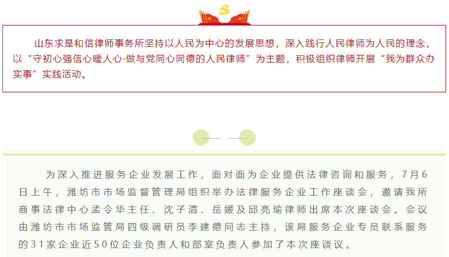 我为群众办实事|求是和信律师在行动(二十九) 来源:求是和信网 日期:2021-07-30 14:37 发布人:qshx 浏览量: 2102 上一篇:山东求是和信律师事务所与潍坊市欧美同学会签订战略合作协议 下一篇:求是动态 | 我所青年律师闪耀“大成杯”诉辩赛场 专业素养与团队协作铸就卓越战绩