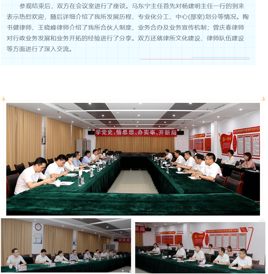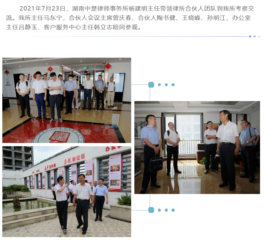 『求是资讯』湖南中楚律师事务所杨建明主任一行来我所考察交流 来源:求是和信网 日期:2021-07-30 15:05 发布人:qshx 浏览量: 2957 上一篇:我为群众办实事|求是和信律师在行动(三十二) 下一篇:求是动态 | 我所青年律师闪耀“大成杯”诉辩赛场 专业素养与团队协作铸就卓越战绩